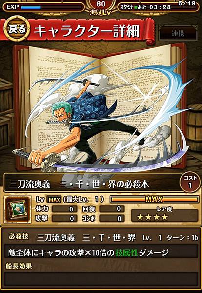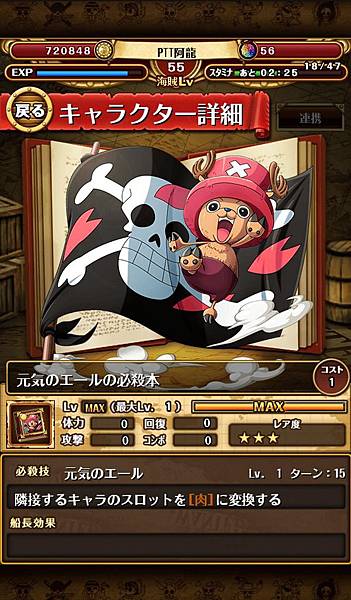 關卡獎勵:關卡會有機訊掉落一切你看到的角色,還有卓羅的兩個四星版本和三星喬巴的技能書!